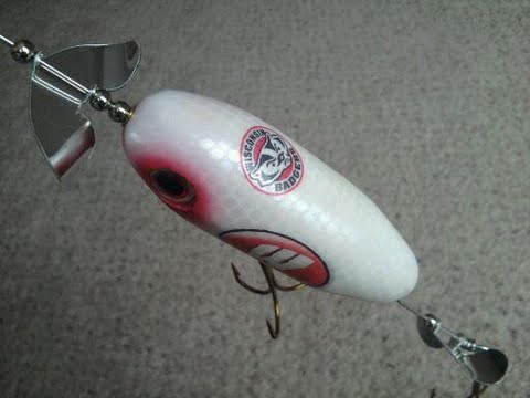 Here is the UW Alumni topwater plug finished, I love these for calm summer night musky slaying. Cedar body, .062 SS through wire 360lb swivel and 5/0 trebles.