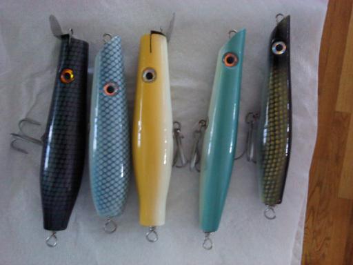 Thnaks everyone. I have a tone of blanks that need to be sealed, etc. and a few more painted ones that need to be etexed. I've been experimenting with different woods recently and have been slacking on finising my plugs  . Planned on drilling weight holes tonight but ended up running into my uncle who brought me some birch he cut down on his farm in maine, so I had to turn some needles  It was my first time turning birch - tough to turn but I like it so far. Lets hope they swim the way I think they will!