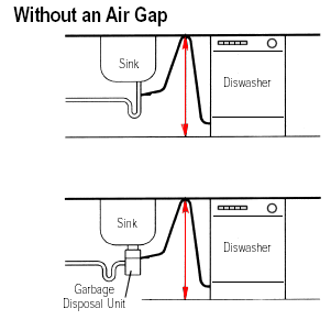 Andy, the dishwasher check the drain hose it should go up from the bottom of the dishwasher to the top of the counter top in the same cabinet that the sink drain is in, this is called an "air gap" the drawing says with out an air gap but that is how you want it to look