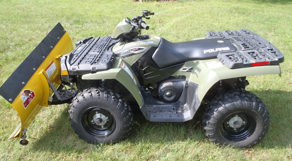 Little use, mostly used in the winter to plow my driveway. The machine had no problems plowing last year with all of the snow we had. Still has factory safety stickers on it. The little nubs on the tires all still there. I bought the Polaris from Armand's Power sports in Halifax Mass. I brought it to the dealer for maintenance and recalls. I have the title in hand.