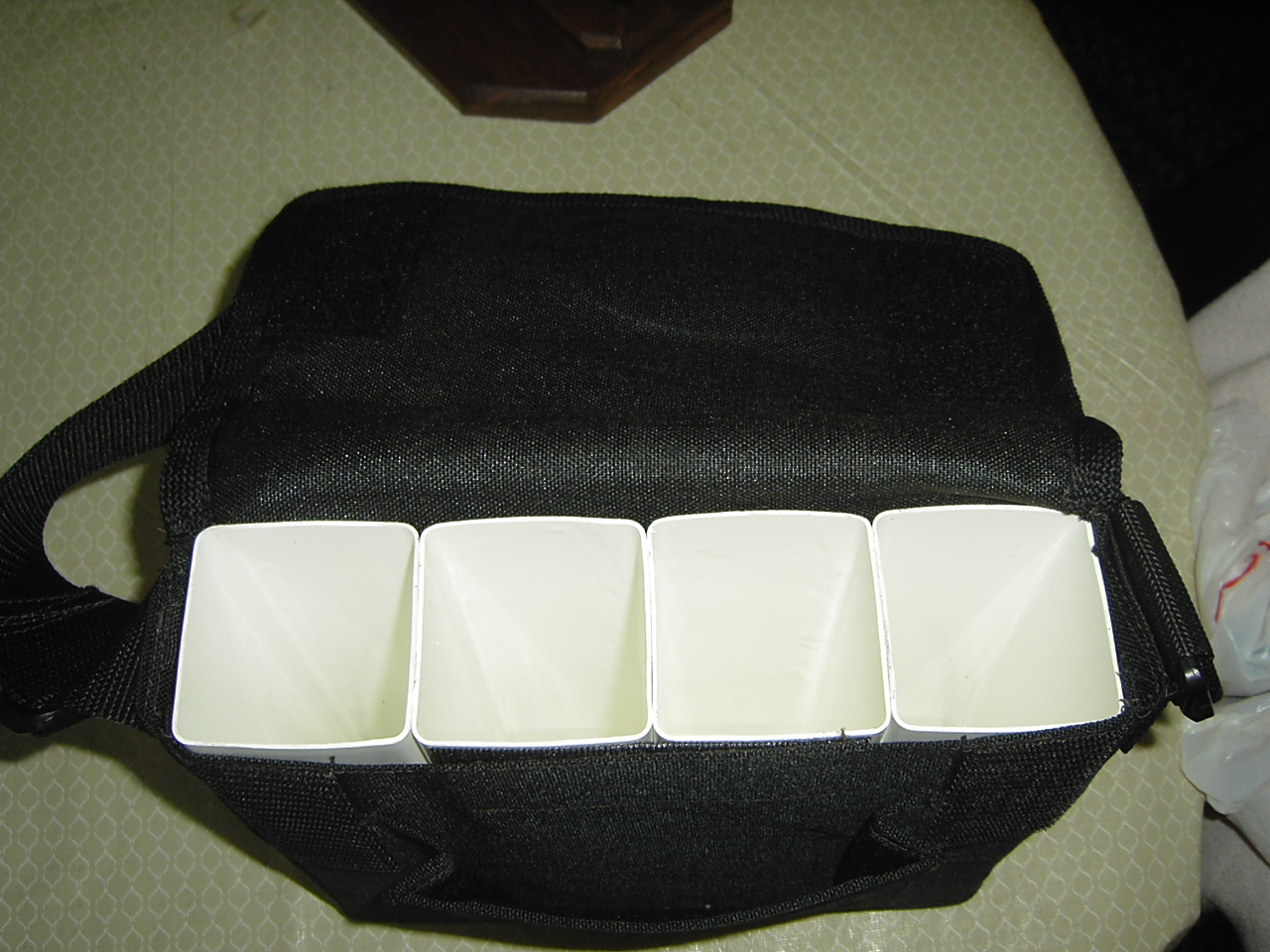 This is a brand new, no non-sense heavy duty bag. It was custom designed by a fisherman for fishermen (or woman) and was handcrafted in Massachusetts with quality materials. The bag measures 10" wide by 9" tall, heavy white plastic (good for visibility) with bottoms - 9" tubes so you can fit those long lures and each tube measures 2.5" by 2.5". The front has a large pocket and other gear can be kept between tubes and sides. The shoulder strap is 2" wide and it has two belt loops on backside. I have another one of these bags I fish myself and it travels and fishes well. Was asking $80 or BO - lowered to $60 Thanks!