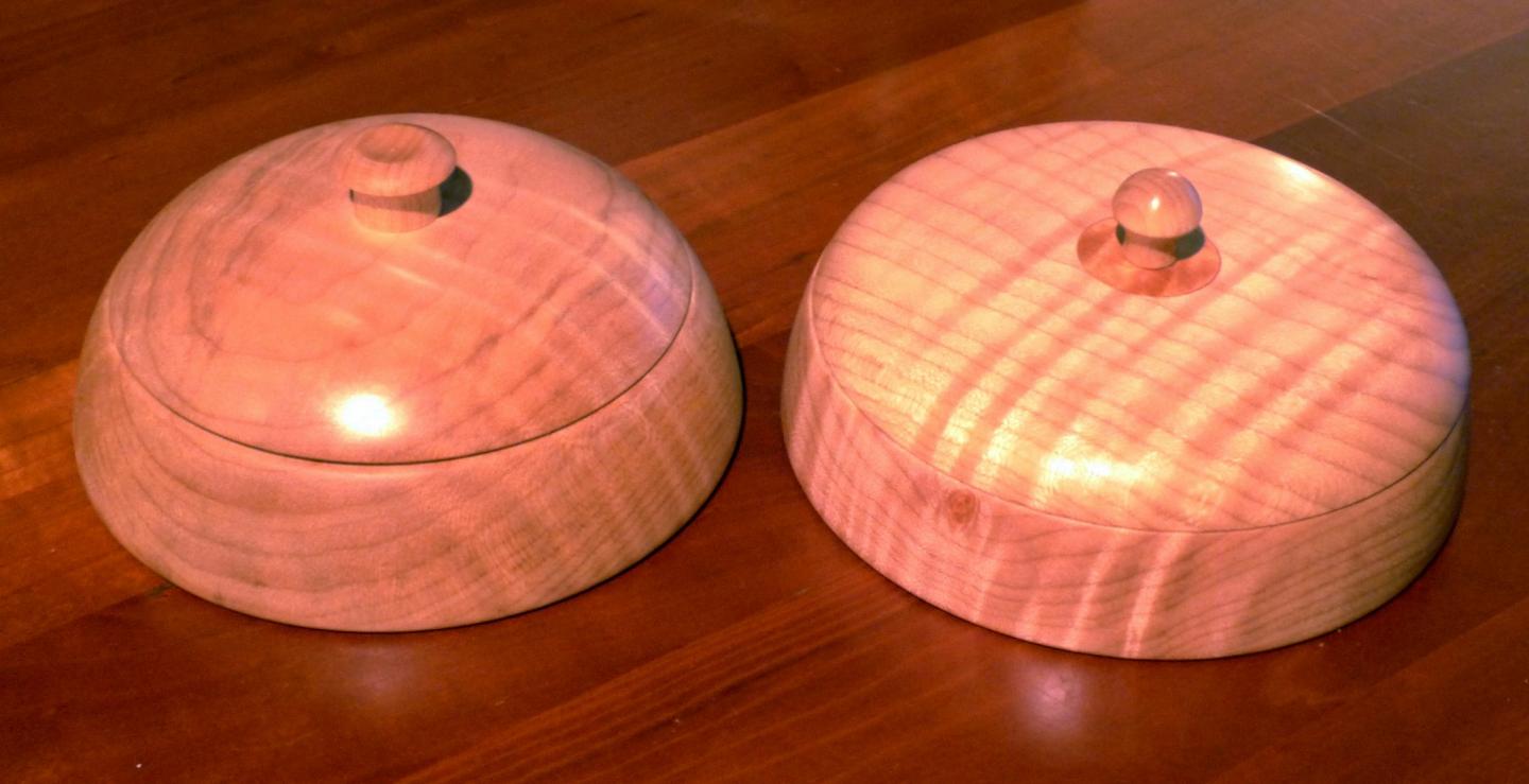 figured maple turned boxes....yes they do look like b**bs
