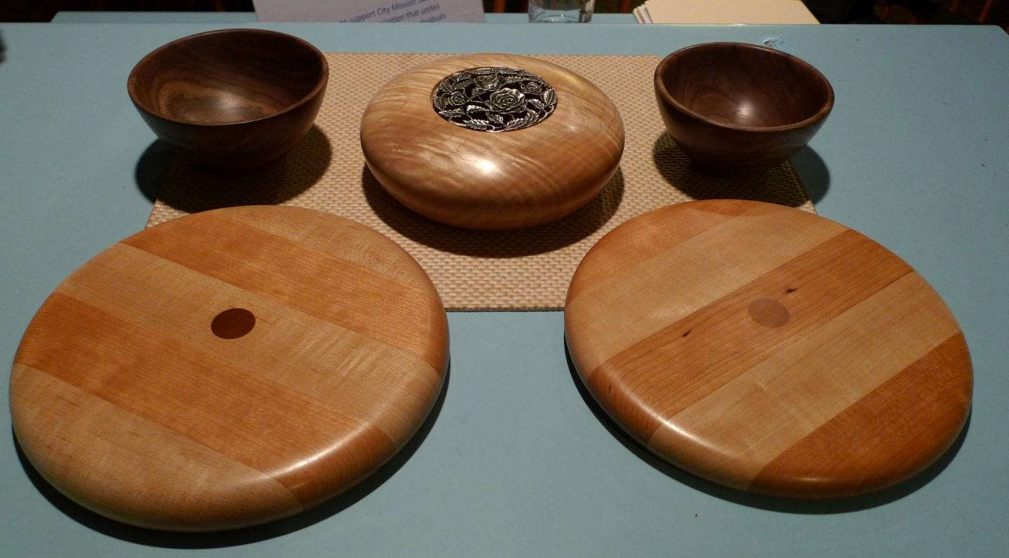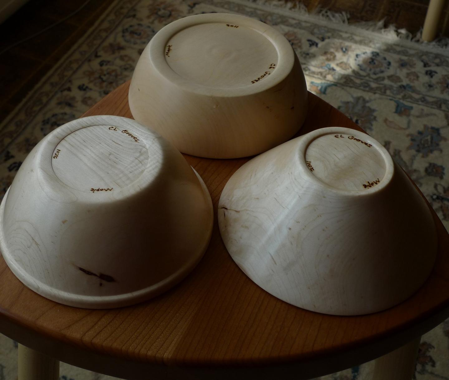 Maple turned bowls "courtesy of Irene"... must come to my booth to seen the amazing shimmering grain pattern on the inside of these butter smooth babies
