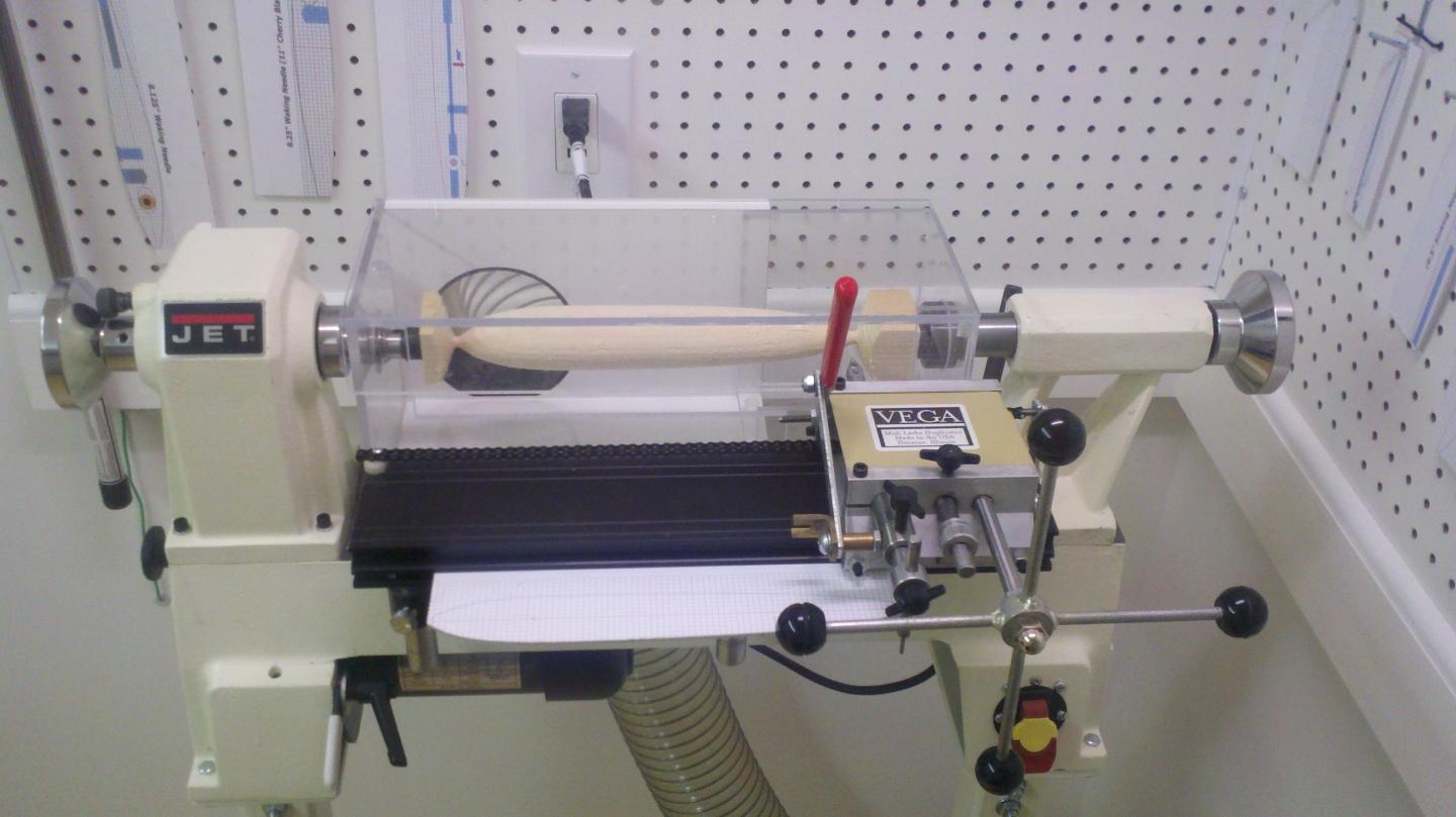 - I adjusted the Vega before I built the box; I wanted to make sure it would cut the the thickest piece possible. I used a caliper to ensure it cut the same diameter across the full travel of the carriage. Once all was squared, I locked it down and built the box around this permanent set-up of the Vega.