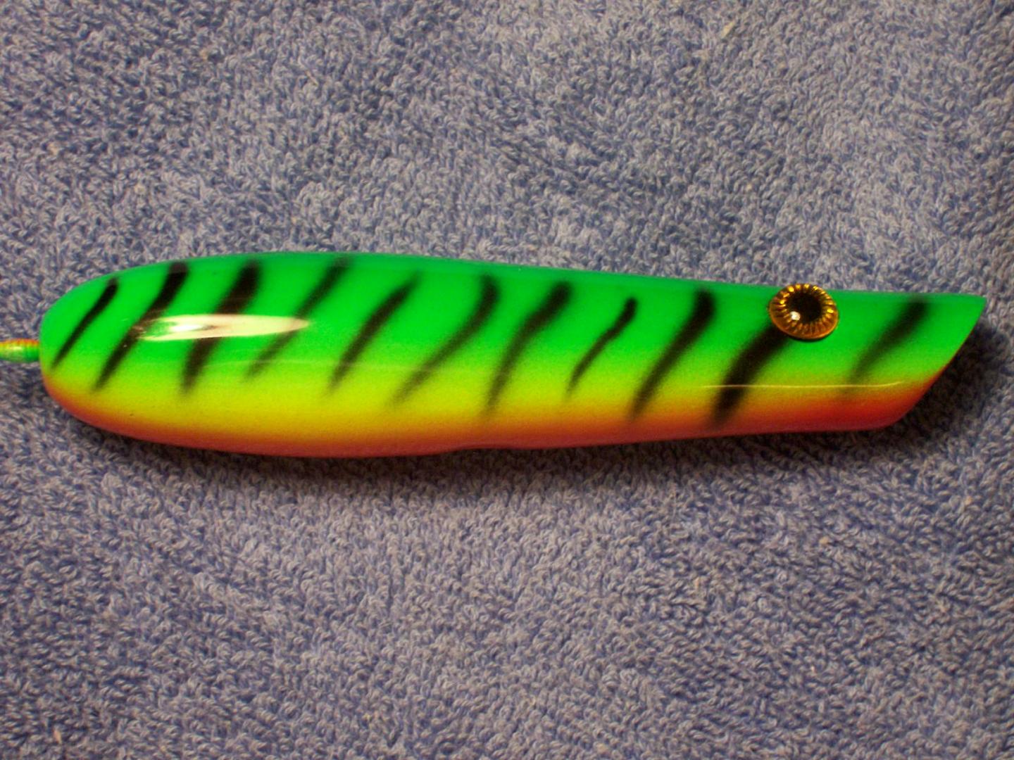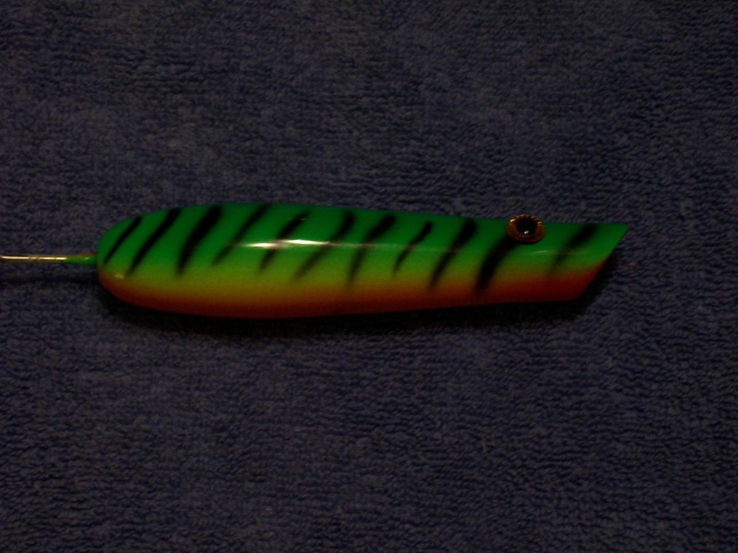 Here is a Goo Goo pencil popper I recently finished in a fire tiger pattern. Paint is Createx Florescent Yellow and Green, and Golden bright orange and black. The clear coat is the Diamond II. It looks great in person, still trying to get good pictures, these are a little washed out. I applied the epoxy using the latex glove method and I am very please with the results. I hope to get more of these done in the near future and will post the results.