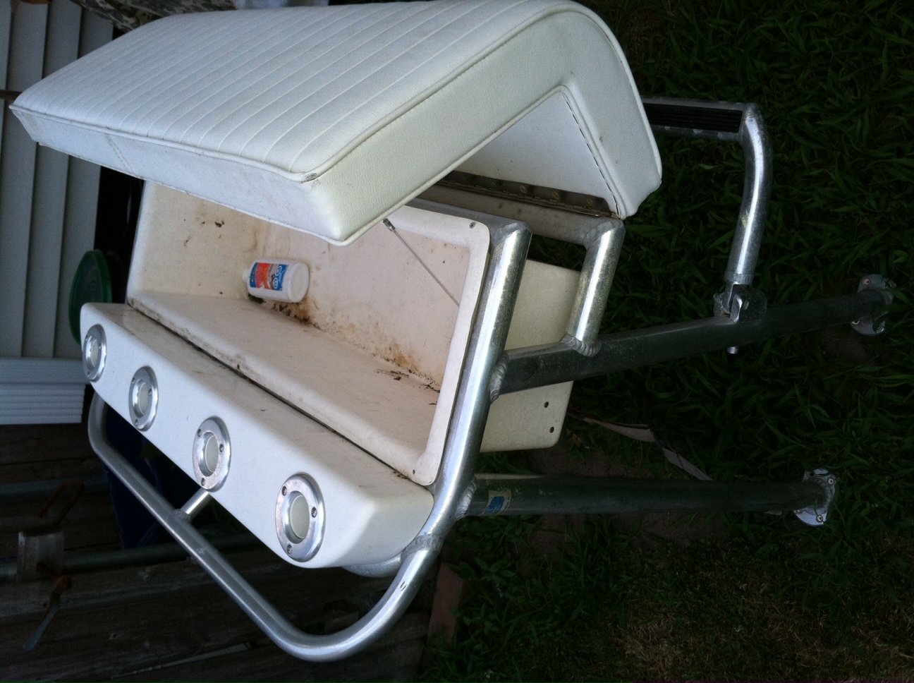 Birdsall marine leaning post with 4 stainless steel rod holders. Stainless hand rail etc.