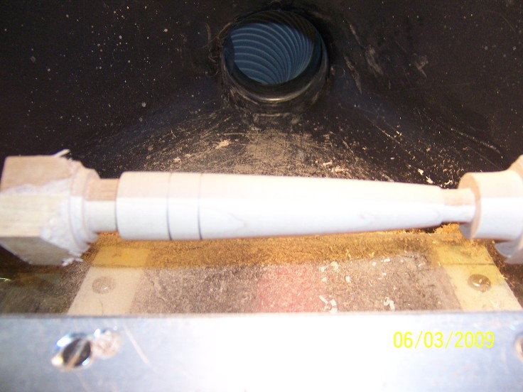after trueing up the ends, either with a belt sander or a saw, mark you center, normaly I eye ball it, but here, you dont have alot of extra to work with, so an exact center is a must, find your center by marking the blank corner to corner, or with a center finder...