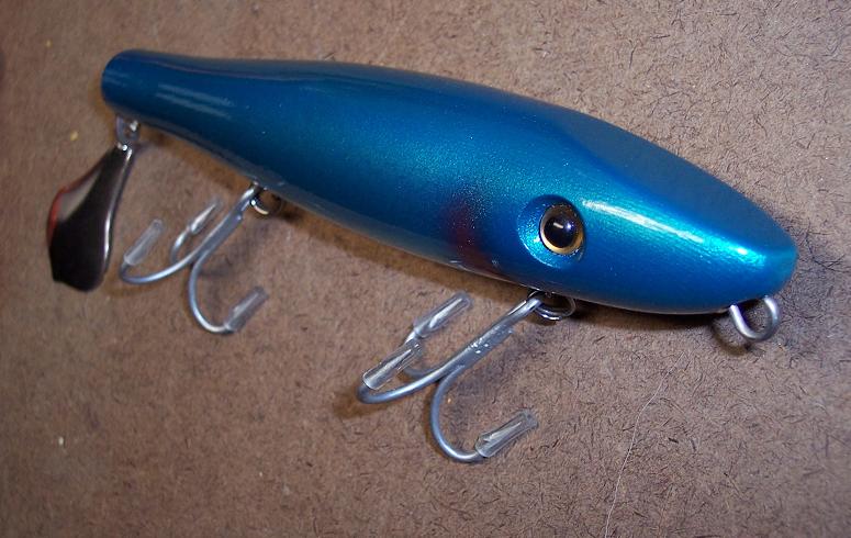 I also just got a pic of an old beachmaster plug that's 15-20 years old. The body is a traditional surfster body but has a different lip in addition to its weighting scheme. I already turned a bunch of surfster bodies from AYC and am going to build each one a little different and see what happens.