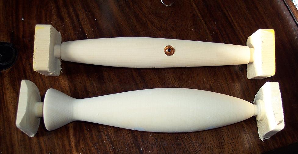 all turned,sanded,scooped,belly holes,lip stolts,thru drilled and eye holes.