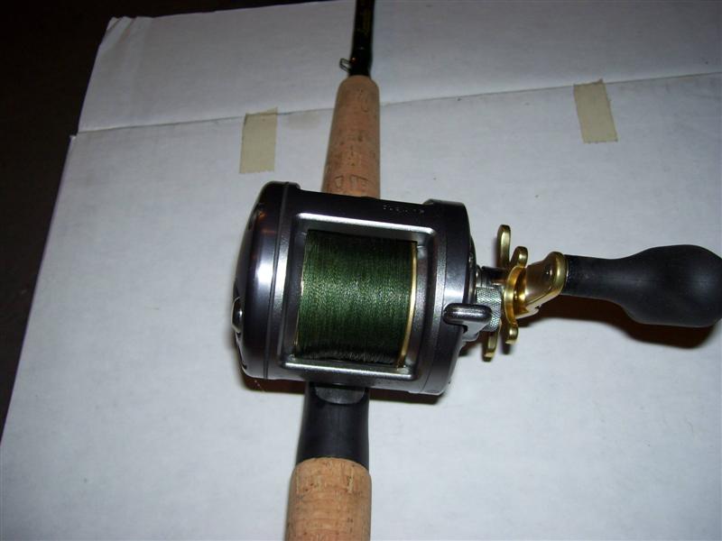 2 years old. Only used on the boat, never wet. 8 out of 10 cosmetically. Few scratches. 10 out of 10 mechanical. Loaded with 300 yards of 50# PowerPro slick and mono backing.