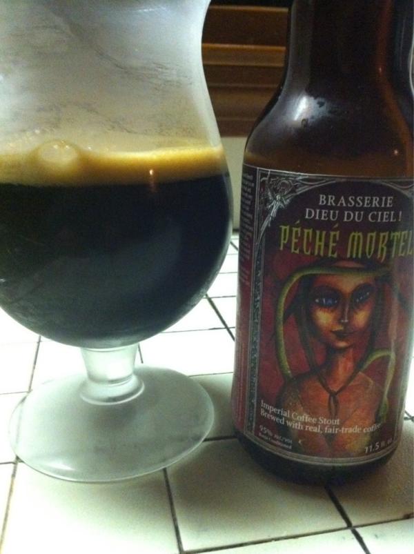 Founder's Breakfast,Goose Island Bourbon County and Peche Mortel. In that order. The Goose Island is 13% ABV and is aged in a bourbon barrel..