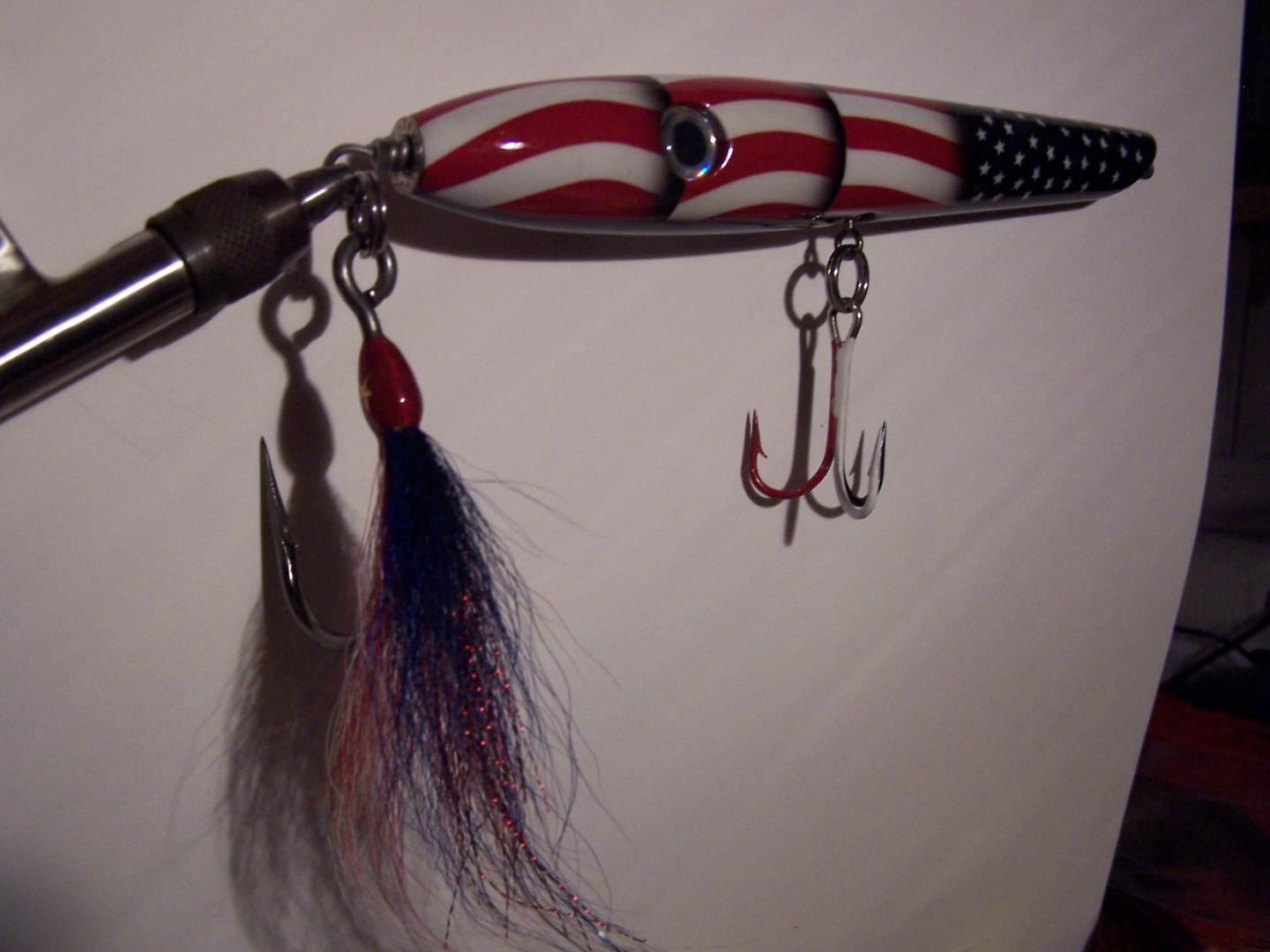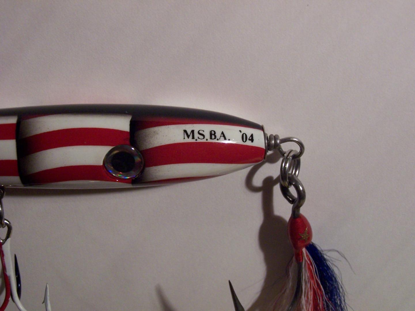 This pencil was turned in 2004 by Larry "Bigfish" Wentworth and painted by none other han Mike "Fishing Freak" Delzingo. I have been the caretaker of this beautiful plug since I won it in a raffle at a 2004 plug night at a Mass. Stripe Bass Meeting. Obviously it has tnever been swum, or should it be. It has been stored upstairs in my office since the night I brought it home. I have something special I want to buy this year and selling this plug will help me get there. I have a minimum I want for the plug and I wont part with it unless the bids, or a bid, reaches that point. It is an extraordinarily unique fishing lure, and looks every bit as good in person as it does in these pics. Just so that everyone knows I emailed the boss with my minimum sale price. I dont want anyone to think that price will keep changing. I dont expect to get what JR was offered for his flag Mac pikie he has, but halfway there would be nice. This sale/auction ends at midnight February 7, 2014. The plug will go to highest offer over the minimum acceptable price that I have told JR I would accept. Thats fair.