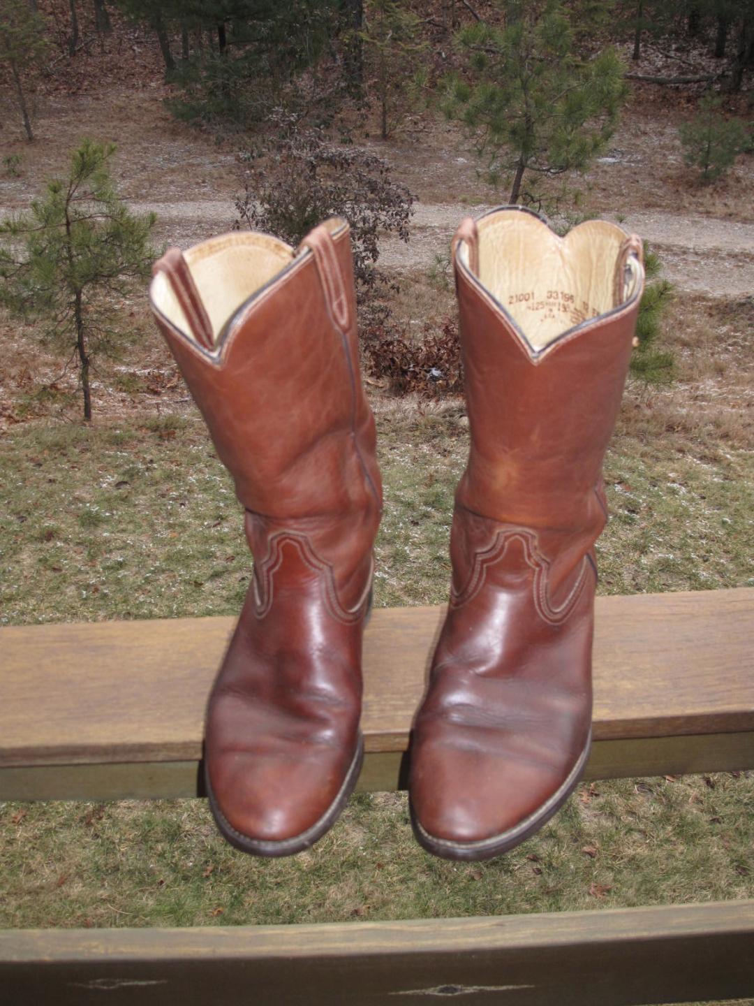 They are just too darned big for me. Nicely broken in and comfortable, but showing not a lot of wear. Walking heel, nice vintage Dodge City (Made in the US) boots. Figured I would try here before I ship elsewhere. They are a real size 12 and extra wide EE. I have a smaller pair on the way that are pretty much identical, so these are going. $35 picked up in SoCo, RI. Add $13 to ship to New England states only.