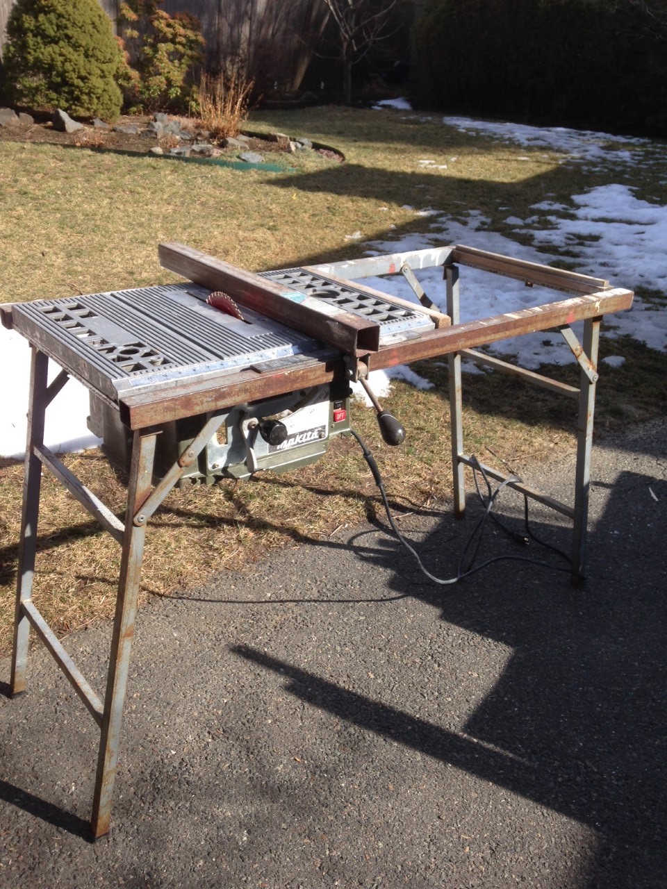 Portable Makita table saw with drop in stand and fence. Very strong motor, will not bog down, even with framing stock, eats wood. Motor rebuilt two years ago. Has been my jobsite saw for many years and has plenty of life left. $200.00 including stand and fence. (stand folds up flat) Located in Marblehead.