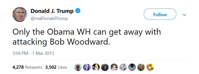 wasn't he saying that the media so adored obama that he/his white house could "get away" with attacking woodward?....anyone else would be pillaried by the media for attacking such an esteemed member...as trump and his whitehouse will be if they attack woodward and his credibility