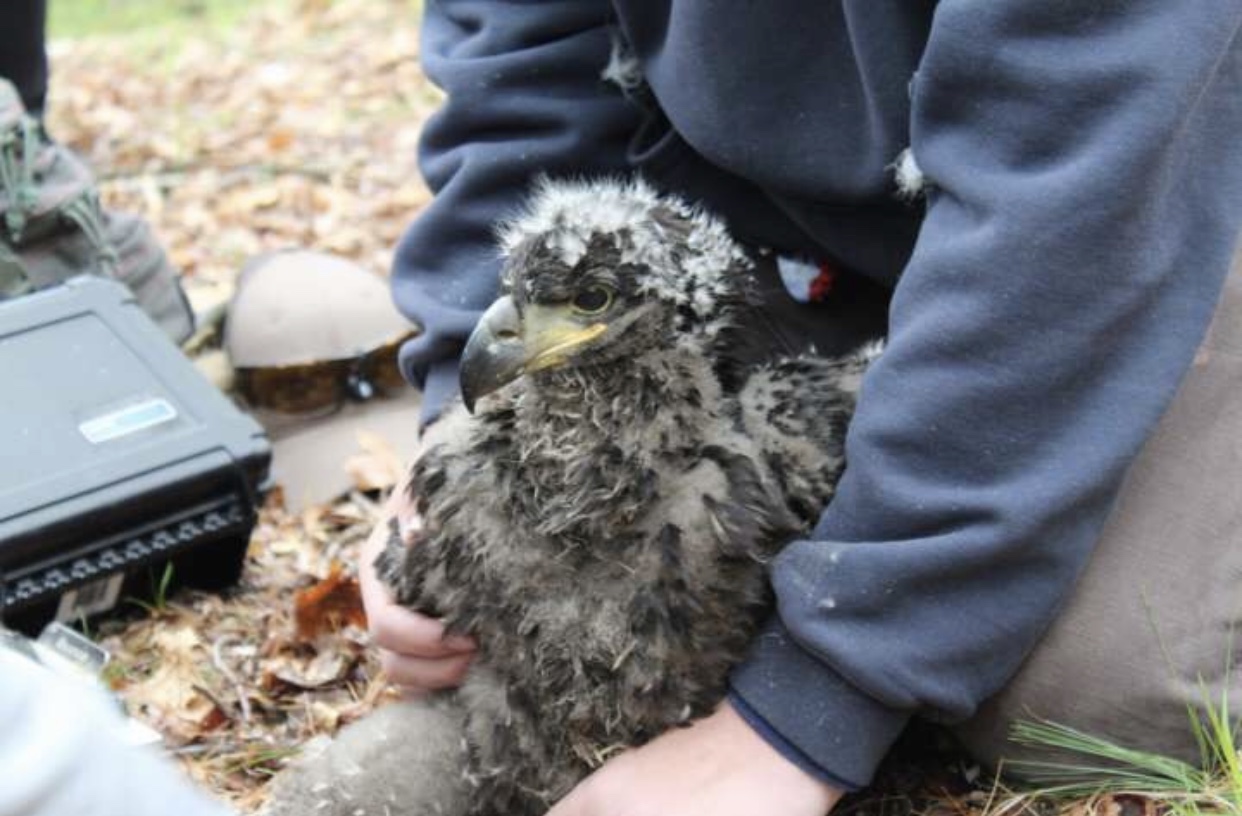 This week my son had a rare opportunity to work with Mass Wildlife at his school. He goes to Bristol County Agriculture High School, in the Natural Resource program, and they monitor the eagles nest at the school. Usually he is collecting data with the drone which had an inferred camera and can detect heat in the eggs and collect other vital data from high above the nest. A little over 5 weeks ago the one egg in the nest hatched. Its still too young to determine the sex of the bird. The banded it with a state and federal band, got a blood sample, weighed it (just over 7 pounds) and chipped it for tracking. He came home super excited! It was cool to see him so enthusiastic about what he had encountered. Great school for him, it fits him perfect. Next year is his senior year and he is looking at becoming a wildlife biologist working with animals or reptiles....as long as the school has a baseball team.LOL