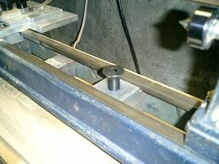 Bottom of tool holder. I used a piece of plastic to keep from having aluminum on aluminum which would gall up after a while. You need to use materials that will allow the holder to slide on the plate, yet not wear down. I also put 45 degree angles on the front of the holder for clearance so you can get closer to the work piece.