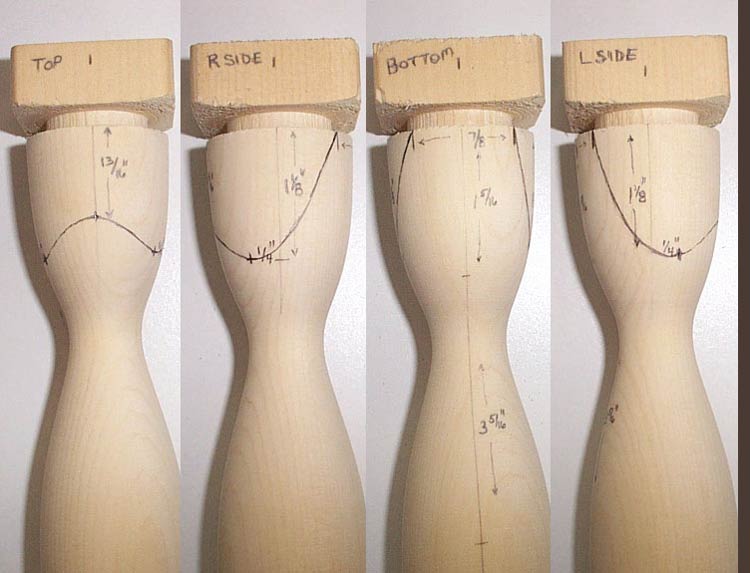 Now all you have to do is connect the dots. One thing that is important is the deepest part of the lip is closer to the top than to the centerline. That's where the 1/4" mark towards the top comes in, that's the deepest point. I neglected to scribe this in but you can put a pencil mark on the centerline at 1 1/16" on the two sides as that is where your tracing should intersect the centerline.