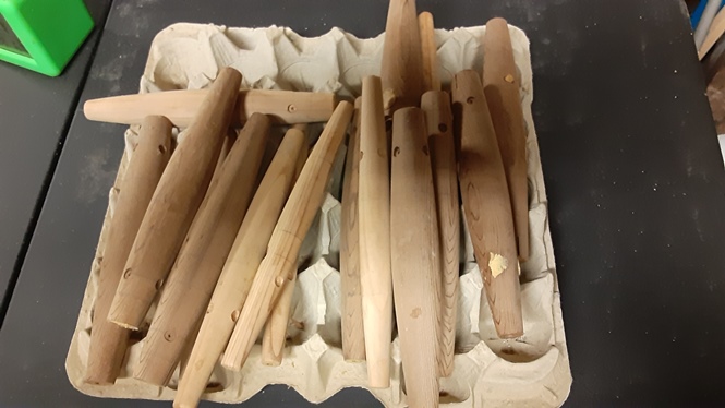 I've got a bunch of maple blanks cut and turned the first 1/2 dozen into some needles.