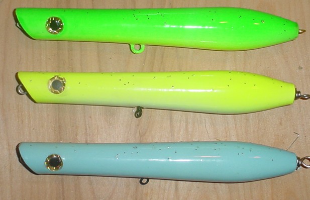 3.5 ounces and I bet they cast a mile. I'd really diggin that bottom pencil. Is that a stock color or did you mix it?