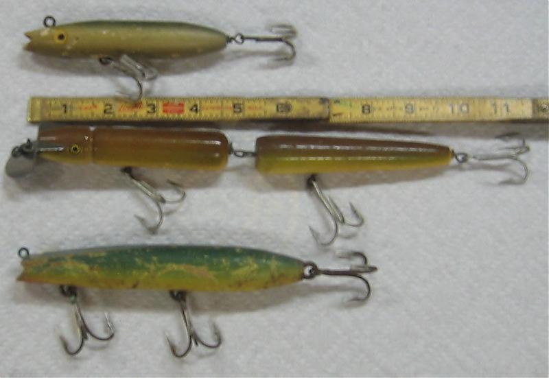Can anyone id these 3 plugs for me. They were part of a large lot I picked up over the winter. Jointed eel and large darter weigh 2.5 oz, smaller darter 1.2 oz.