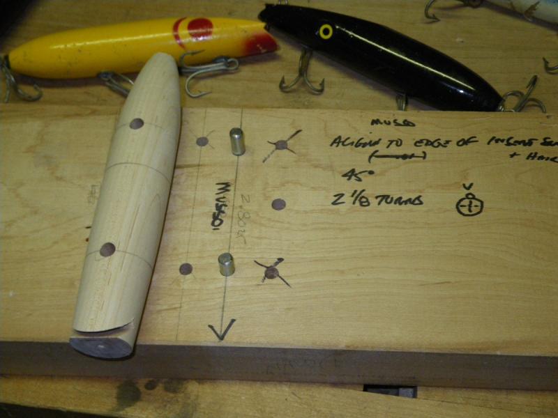 I am working on my first darter. I wanted to hydro orient it, as it will be unweighted and I wanted to do what I could to get them to sit right. So after I cut off the square ends of the stock and floated it to find what side was up, I was trying to think of a way to work with the round blank as I've had more than my share of shop 'incidents' and I want to use the table saw to cut the lip slot.