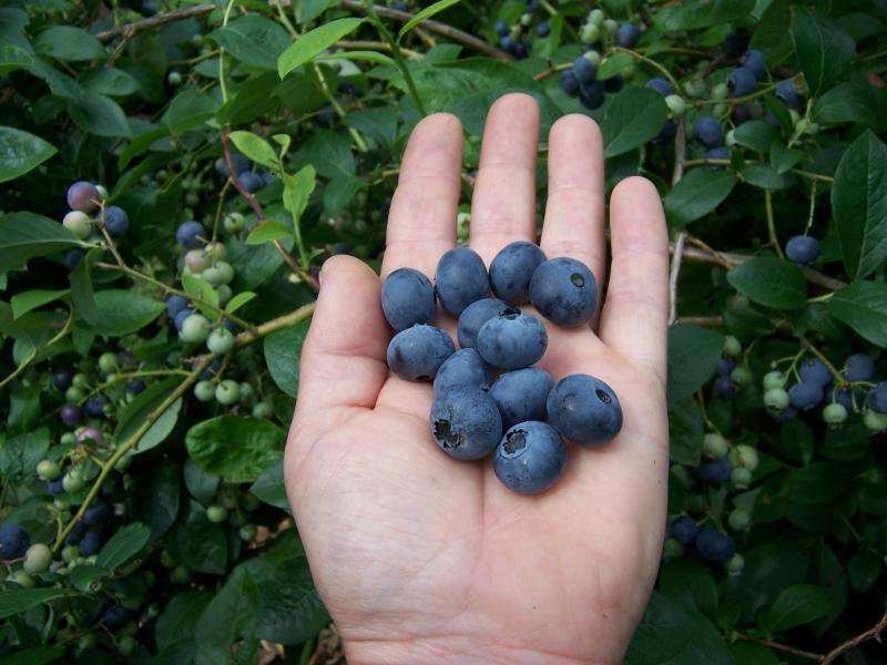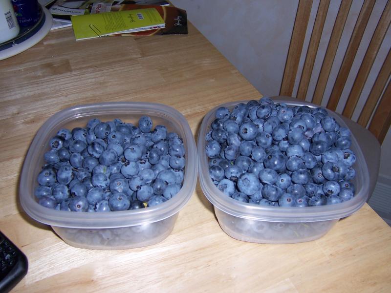 Blueberries (only have 3 bushes left) are almost non-existant due to too many years of neglect. We pulled all the vines that were entangled through it so maybe next year will be better.