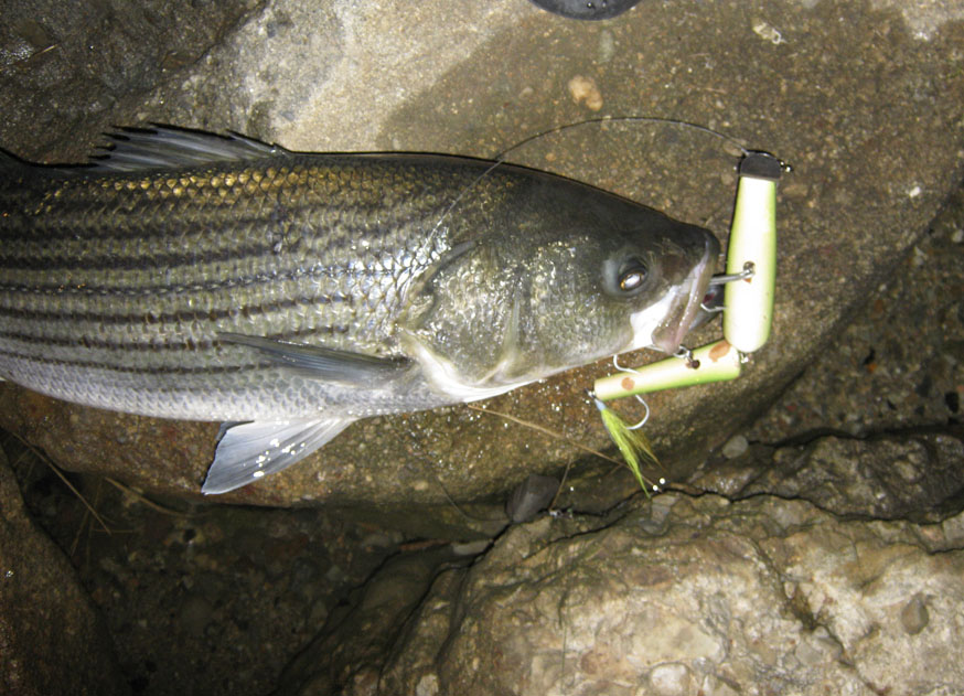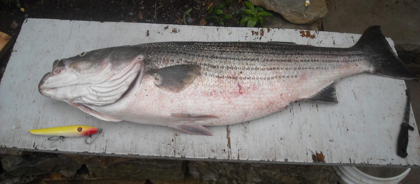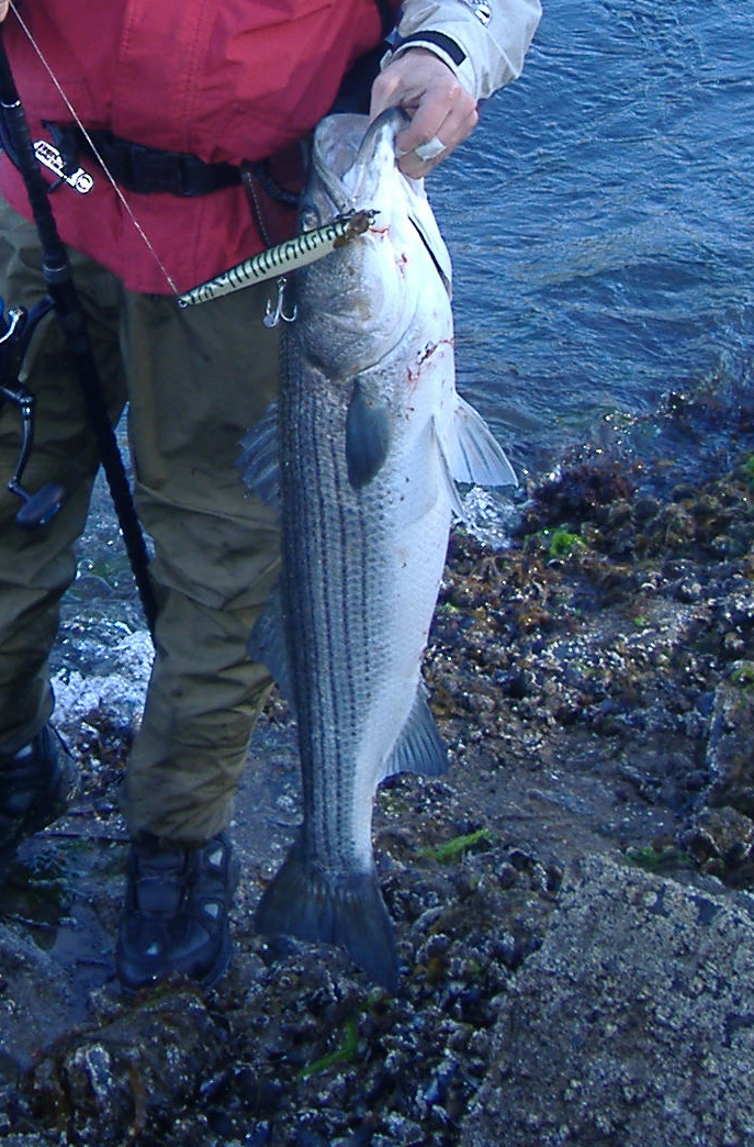 First fish on one of my own plugs.Got this fish on a pollack pencil I made. Its about 2.25 oz and floats with a slight tilt...works real nice on a slow retreive...I feel accomlished, now back to eels...