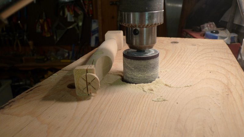 I too use the bottom wheel of the belt sander. Set up up the height and slide the plug into wheel against pre determind stop. both square ends are left on and I sand off the top of front end in the dish out process. This takes very little time to do. actual video would describe this process easier. Just need a video recorder!!