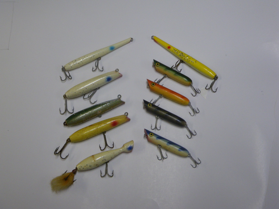 He made a bunch of tiny lures. poppers, polaris', darters, bottles, pencils. It would be cool to focus a collection just on them.