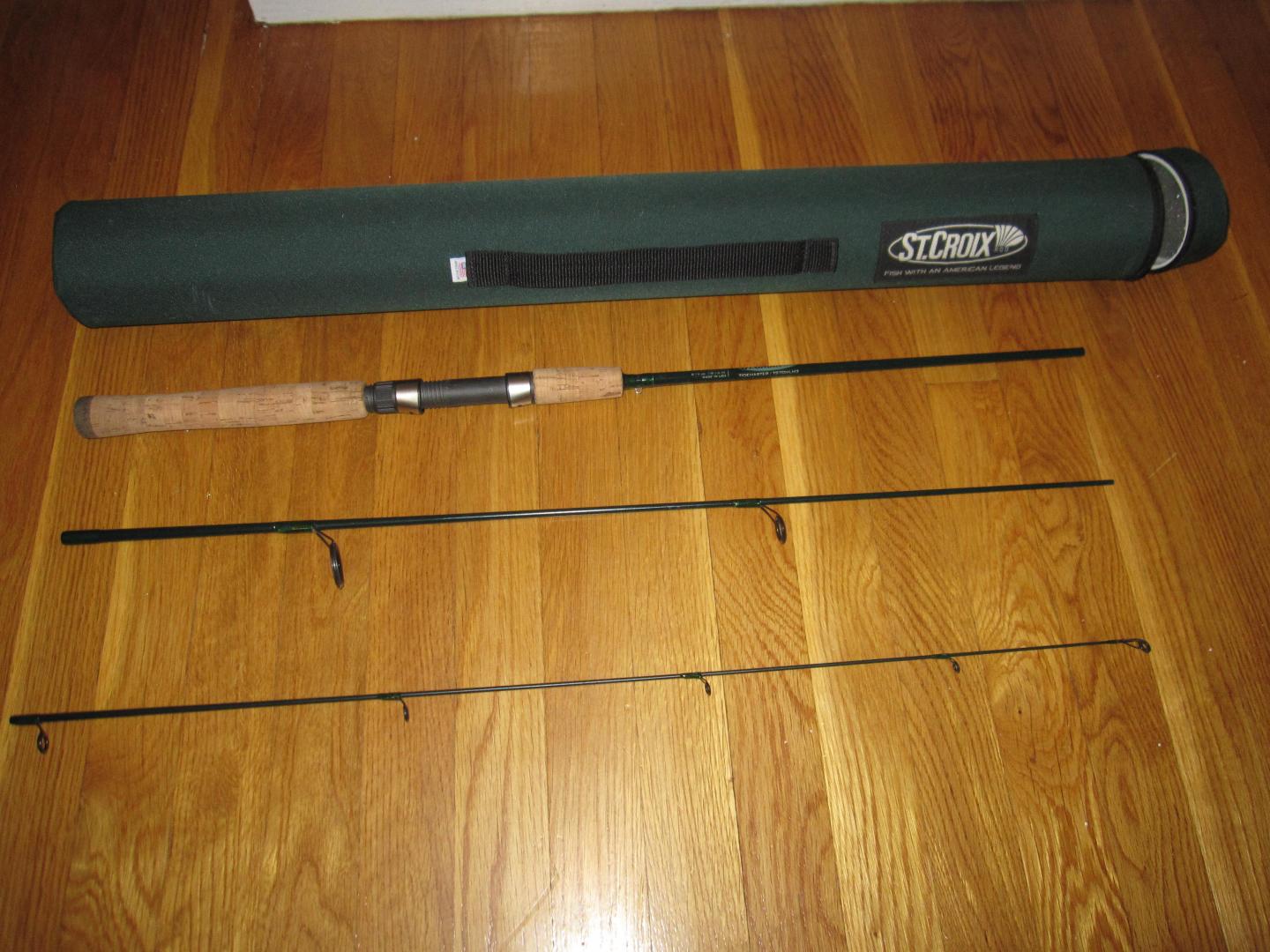 In going through the basement I came across a St Croix Tidemaster / TS70MLM3 that I bought a few years ago and never really used. This is a 3-piece/7 foot spinning rod rated 8-14lbs. It come with a hard St Croix carrying case.