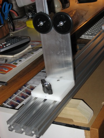 since my last post 1/13 I went a Little nuts. So heres the Proof! 80-20 Track,Hand cut and Finished uprights,Rollers from Smallparts.com and The Thread carrier slides on Knurled Brass Thumb nuts. Thread Tension device is from Neptune out in Cali.