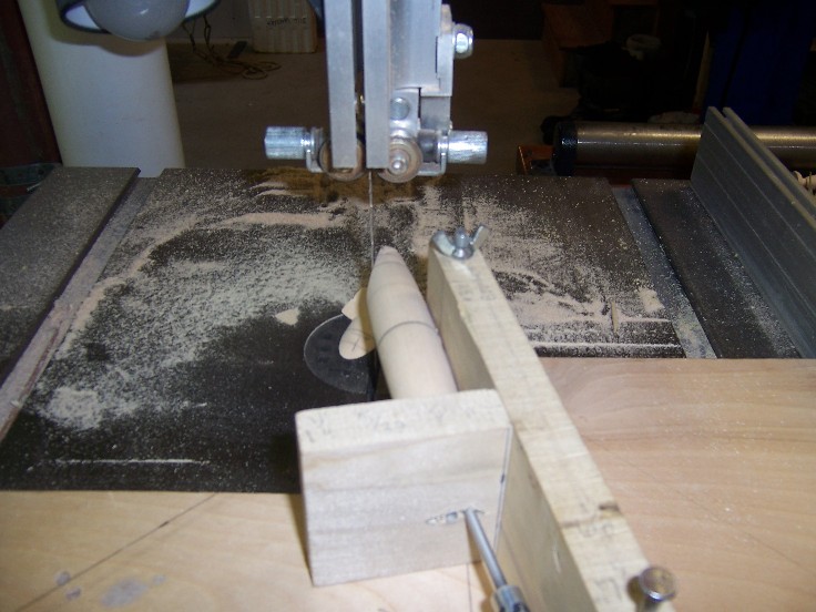 I saw Joe's fixture in person and it is a great fixture. I used some of his ideas in mine. I will end up using something similar for my next procedure. I just feel I will get more consistency in my first cut with the set up I am using now. I don't have the type of set up Joe has for his band saw so that is why I opted to go this route. I also find it not to be too messy as it is a very small cut and not much dust and it is pretty safe, at least for me, as the blade is only a small amount above the table. Of course you need to pay attention and accident's can happen to the best of us. I still may add an adjustable miter groove set up for futher saftey but for now I will use as is.