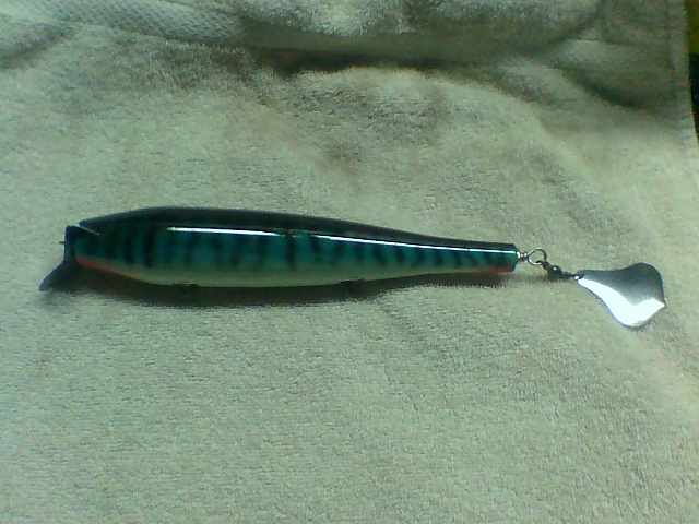Sorry to say I did not enter mine! (I wanted to keep it). So here are some pics of my Flaptail plug! I was very pleased with it and I owe ProfMoriarty thanks for the Flaptail hanger!  Its a "Lido" style Flaptail with a MasterLure style paint job!