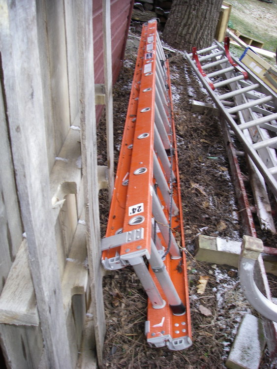 More garage clean up. 4 year old 24' extension ladder made by Louisville. Great shape only used to paint the house.