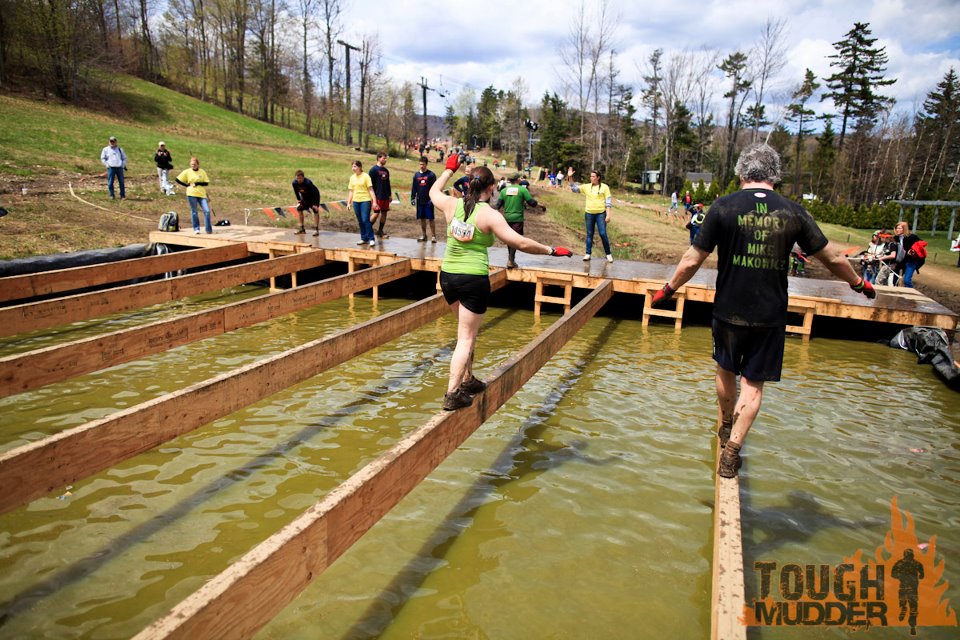 "Everest" was one of the very best obstacles as you had to scale a 15' tall half pipe, which a lot of the better athletes did unassisted. After you got to the top you hung out for a bit and helped fellow mudders to the top if they needed assistance.