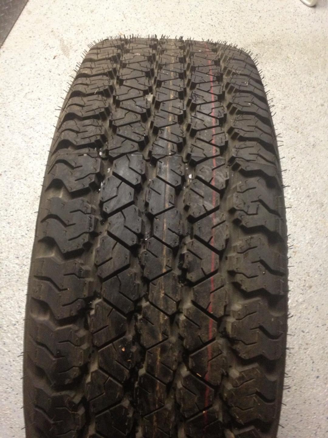 I have two available (one with an unused GoodYear Wrangler RT/S and the other with a Used Uniroyal Laredo as follows):