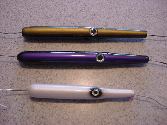 As these were drying I was inspired by BigFish's jointed poppers. So I gave it a go. Again, really pleased with the outcome. They weigh in around 1.75oz and are around 5.5". They sure cause a commotion in the water. We'll see if the fish like them. I'll tell you, I'm really addicted. Looking forward to starting the next batch.
