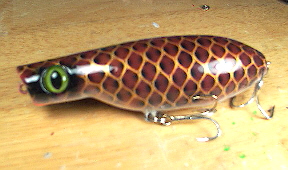 doing my annual send bassmaster a plug thing.you know what it's for.i should just get in the habit of sending you it early in the year.not sure if the pic is going to show,but it's a new pencil popper design i've been screwing around with.figured there is probably no one more qualified than you to put a plug through the paces and to get some feedback on it.put it in some moving water,and keep the rod tip high on a steady retrieve and let me know if you like what it does.hope to have it in the mail by the end of the week.