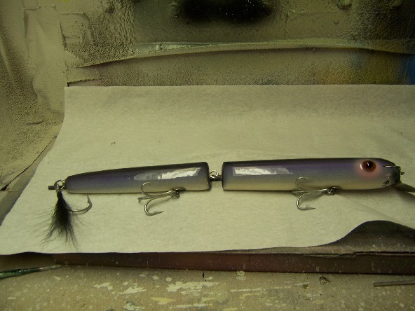 The other is a 12" eel, it weighs a touch more than 2 ounces and is driven by a pikie #2 lip, what makes this plug different, is that i turned it off center, so although the head is round or slightly oval, the tail section is nearly flat...