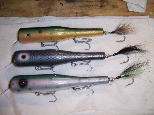 Back in '84. we had a tremendous school of big bass sitting in the mouth of the Merrimack, the most effective way to get them when the tide was running was with a 300' shot of wire and a plug... a goo-goo being the weapon of choice when the tide was realy cranking,light blue, or rainbow the best offering... the problem was for every 10 fish hooked up, you would land one, droppping fish became maddening ,especialy afterdropping out of the rip and fighting the fish for a few minutes, a half dozen of us switched to all siwash single hooks, even on the belly hooks, you had alot of bumps that didnt hook, but when you did hook up,you owned the fish..... the screw eyes were, as everyone knows, another problem,,so when I started making my own, I through wired them and kept the single hook on the tail, I also weight the chin a little, IMHO, this makes an even better swimming plug than the original....