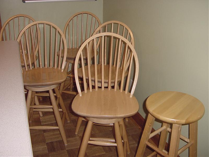 5 solid Maple swivel counter chairs and 1 solid maple bar stool.They are all in excellent working condition no legs are loose they are in solid shape,we paid $129.00 for each chair & $40.00 for the stool,were looking to get $150.00 for all or B.O.
