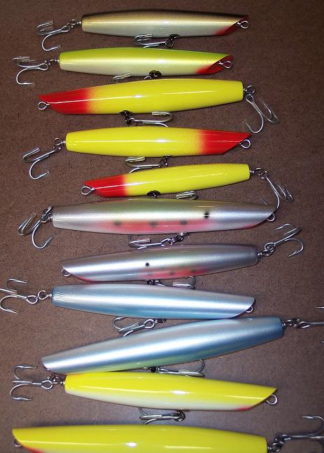 Well its the weekend of the RISAA Show, so I thought I would post some details of what BigFish Bait Co. will have on hand this weekend for custom wood! You will find us in booth 911 with the best selection of BigFish Bait Co. plug styles and colors you will see at any time this season! Hopefully when you arrive you will find what you are looking for.....but in case you don't, please ask me if I have it as I will not be able to have everything and every color out all at once! So please enjoy the pics and I look forward to seeing and meeting as many of you as I can!