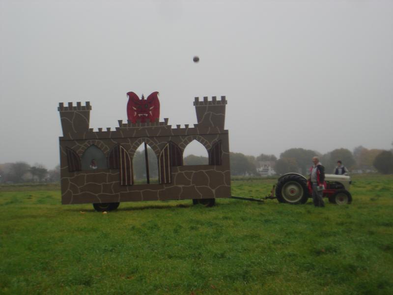 Here's a couple of pics of the trebuchet....the weight was solid cement and weighed in at about 300 lbs. the only metal in the whole unit was through the weight and the firing pin...other than that it was all wood, pegged and lashed together.