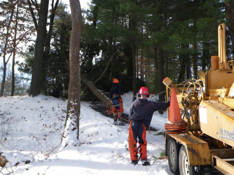 Nice pics. I have some tree work to be done this winter.... Wondering what that ran you for $$$. PM me if you want. I need a little more frost in the ground before I get the crews in with their trucks. Definitely not lightning, as the core was rotted from the base up. Pines are notorious for being weak trees.