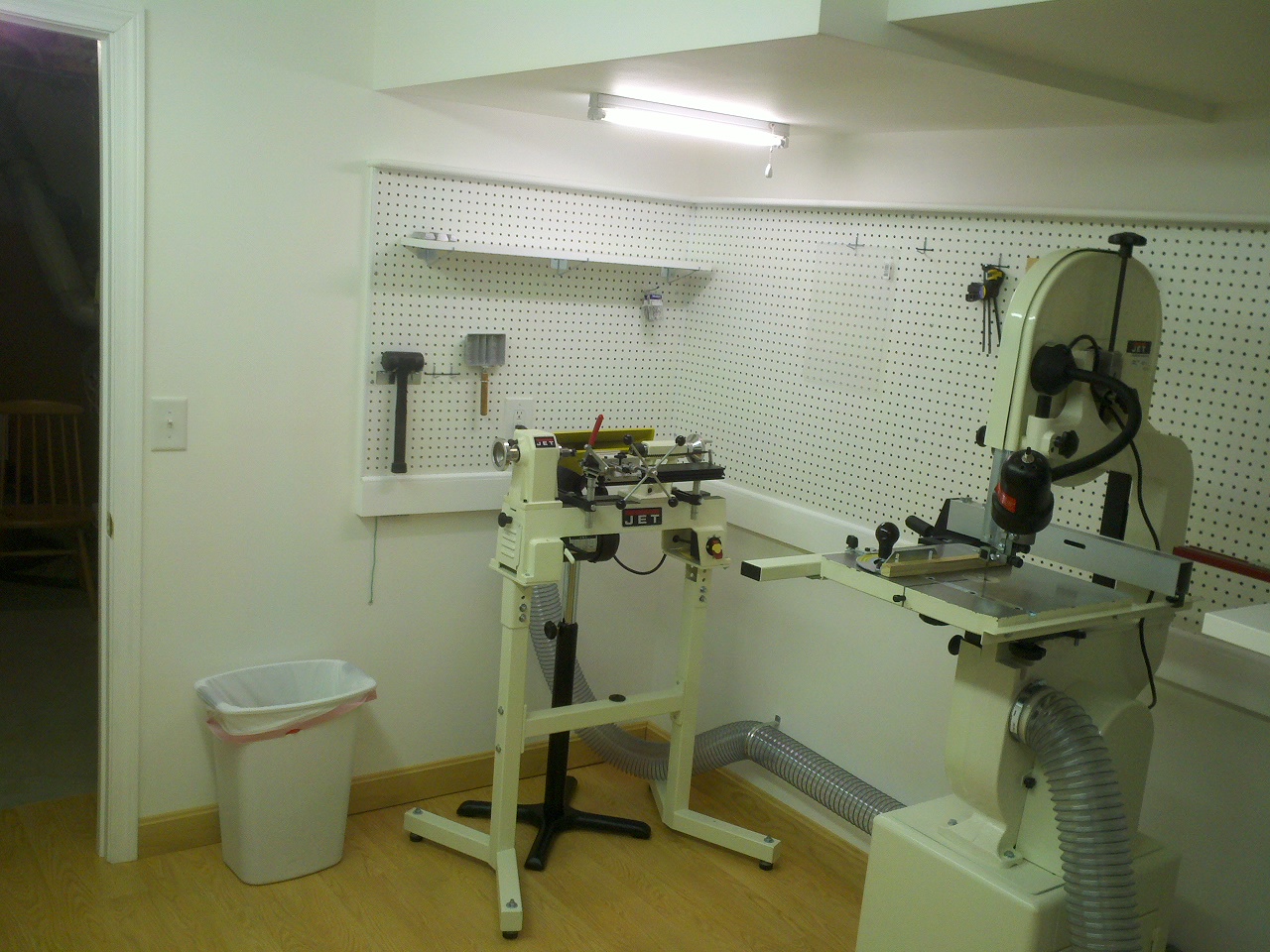The garage is on the other side of the wall the JWL1220 is on, the compressor is in there. I had the 15" drill press on top of the dust collector cabinet, but I moved it into the garage where it is better served (along with the table and chop saws).