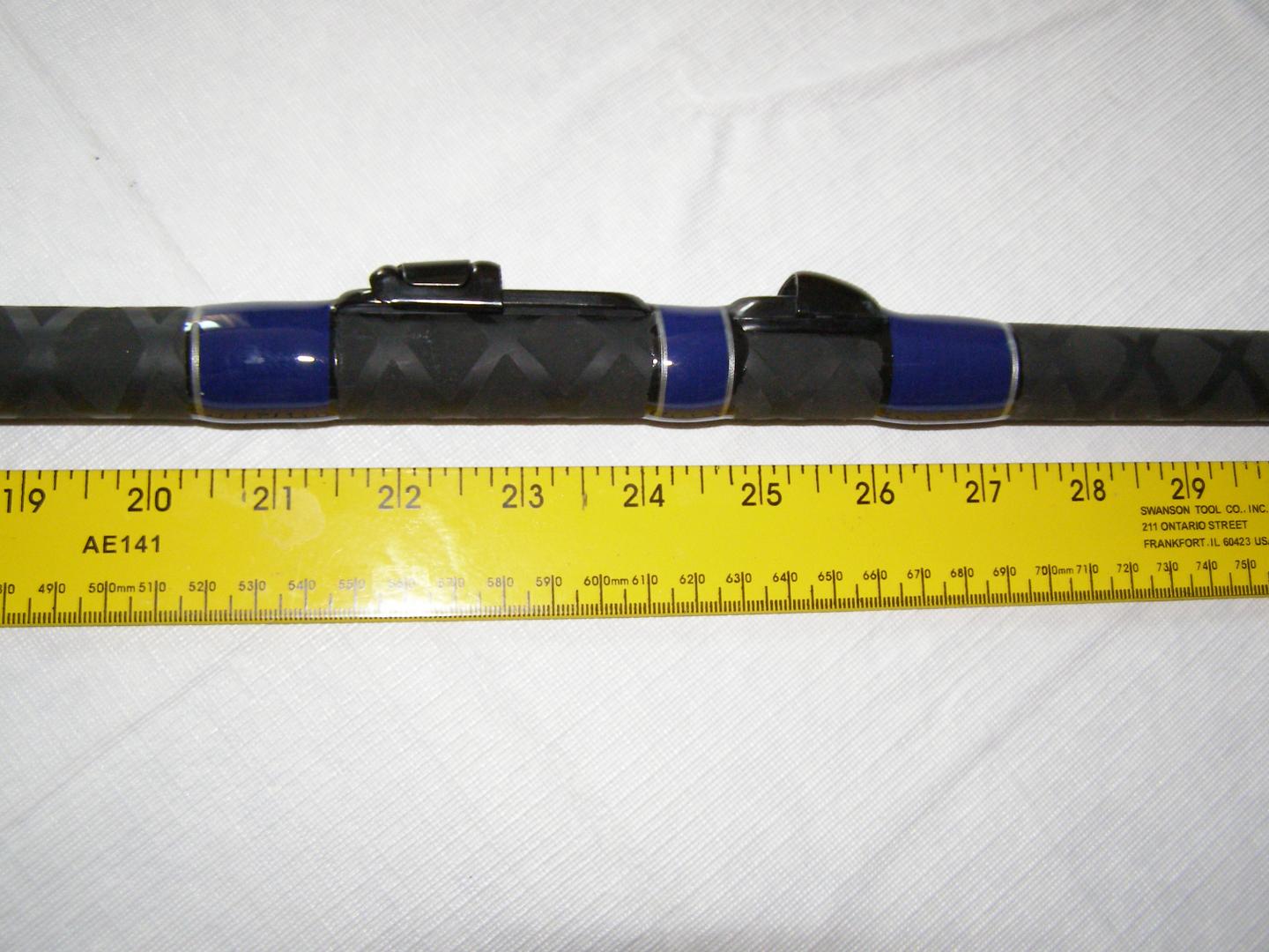 Luds... is that a Fuji flat taped on/wrapped on reels seat on the 1205? I ask because the 20" is pretty short for me on that size rod I think. Blank is in good shape... no nicks or damage? Wraps and guides good or?? I'm interested. Thanks.