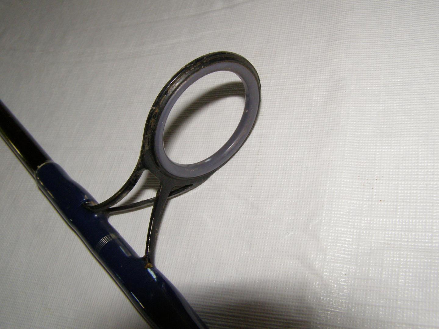 I attached 3 photos. It is a slap on seat and I took a pic of the measurements so you could see the exact butt length. I also took a close up of the bottom guide. The guide rings themselves are in fine shape but the "thingy that holds the guide....lol" is scratched. All the guides are really in the same condition so this pic tells the story other than that the tip guide is a heavy duty oversized alconite or something like that. The rod itself is scratched but nohing below blank coating. I used the rod wetsuiting and rock hopping so its used but in perfect working order.