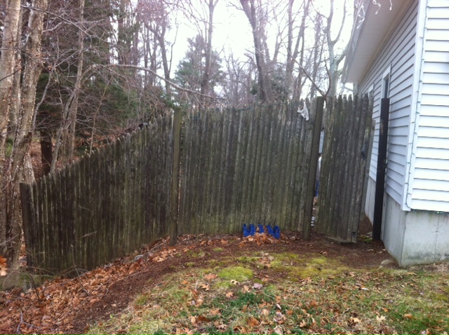 the back yard as compared to a new fence