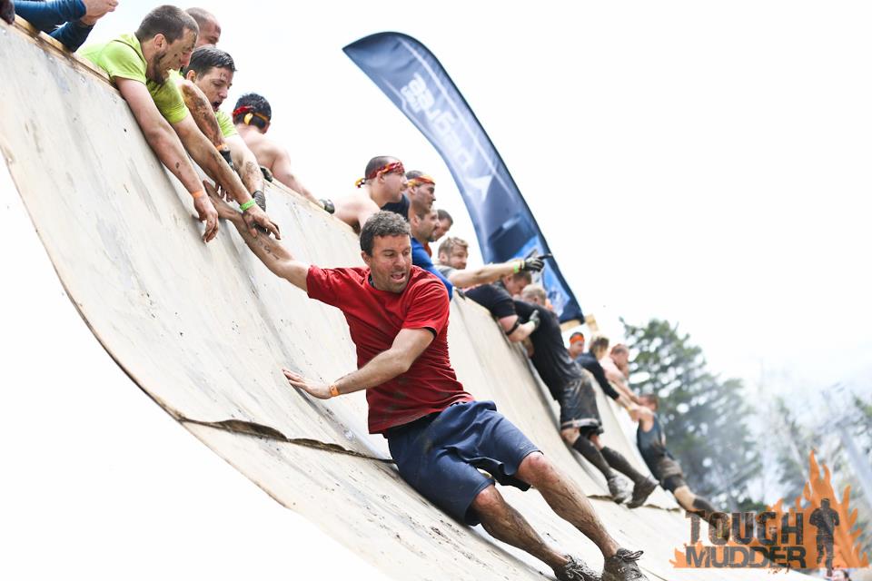 "Everest" was one of the very best obstacles as you had to scale a 15' tall half pipe, which a lot of the better athletes did unassisted. After you got to the top you hung out for a bit and helped fellow mudders to the top if they needed assistance.